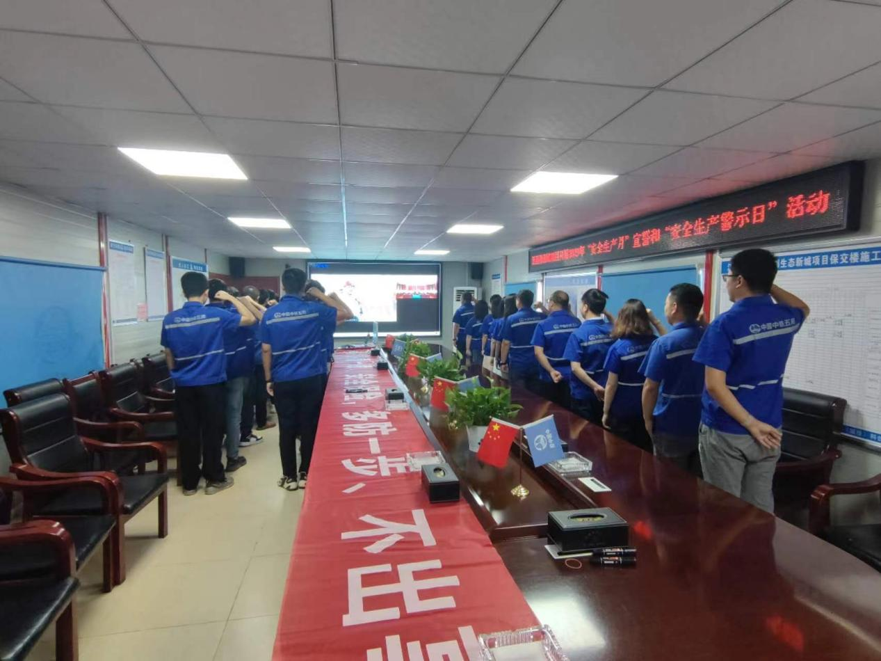今年6月是第22個(gè)全國“安全生產(chǎn)月”。6月1日上午,江西(城投)科創(chuàng)生態(tài)新城項(xiàng)目部組織開展了以人人講安全、個(gè)個(gè)會(huì)應(yīng)急主題的安全宣誓活動(dòng)。江西(城投)科創(chuàng)生態(tài)新城項(xiàng)目辦、監(jiān)理單位恒實(shí)建設(shè)管理股份有限公司、總包單位中鐵五局集團(tuán)建筑工程有限責(zé)任公司職工代表參加了活動(dòng)。活動(dòng)現(xiàn)場,全體人員莊嚴(yán)宣誓,用共同的誓詞向社會(huì)、向公司作出鄭重承諾,由此拉開了“安全生產(chǎn)月”活動(dòng)的序幕。