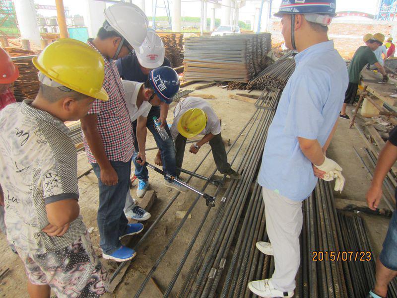 南外環(huán)項目辦根據(jù)江西省交通工程質(zhì)量監(jiān)督站《關(guān)于加強滾軋直螺紋鋼筋機械連接施工質(zhì)量控制的通知》文件精神,在第九次生產(chǎn)調(diào)度會上明確 A1標為滾軋直螺紋機械連接整治示范點。